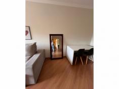 São dois dormitórios, 2 banheiros com box, sacada, elevador e piso madeira na sala e dormiitórios. Moveis no dormitórios, cozinha planejada com fogão, lavanderia com armário...